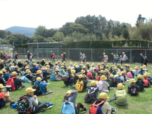 歓迎遠足 天気が心配されましたが、無事に歓迎遠足を実施することができました。6年生に手を引かれ、みんなの大きな拍手に迎えられて、吉井野球場に到着した1…