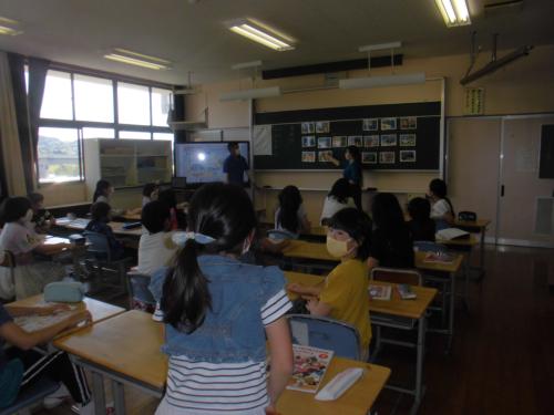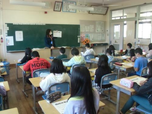 外国語の授業(5年) 3〜6年生で、ALTのヴィクトリア先生をお迎えして、外国語の学習を行いました。ヴィクトリア先生は、月に1,2度来校され、担任と一緒に授業をさ…