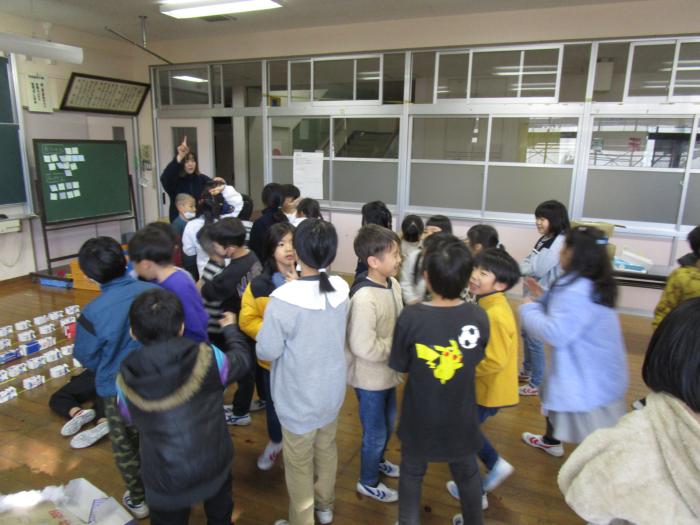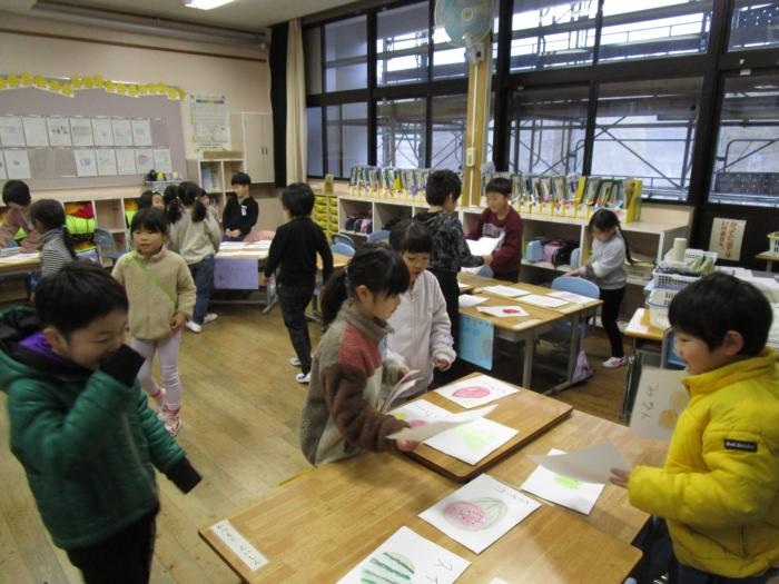 1年生 国語の時間です 1年生の教室からにぎやかな声が聞こえてきました。「いらっしゃい!いらしゃい!」