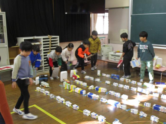おもちゃまつり 今日は2年生が完成させた「おもちゃランド」に1年生を招待して、「おもちゃまつり」を行いました。「いらっしゃい! いらっしゃい!!」。2年生の…