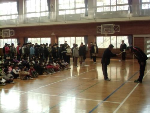 牧の岳タイム(5分間走) 本年度最後の牧の岳タイムは、寒い中、全校で5分間走を行いました。多くの子供たちが、半袖に短パンという格好で、寒さを吹き飛ばす快走を見せてくれ…