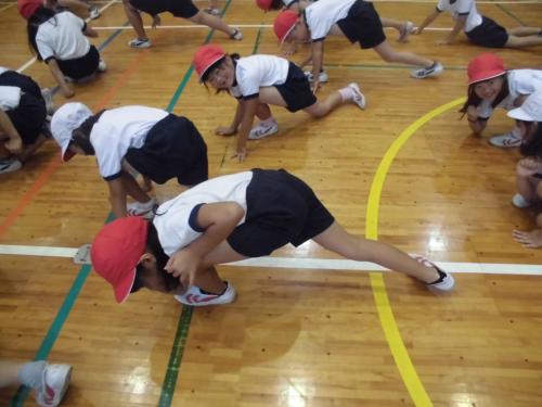 牧の岳タイム(第1回) 今年度初めての牧の岳タイムの様子です。今日は体育館でストレッチ運動をしました。朝からストレッチをすると、心も体もスッキリします。体幹を強くす…