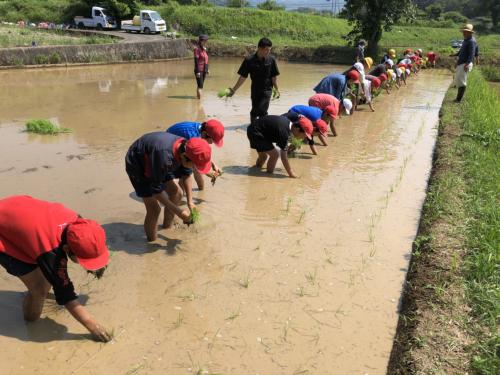 田植えをしました 今日は、三農会(代表 井手勝利さん)の皆様の協力を得て、5年生が田植えをしました。日に当たり、土にまみれながらの田植え体験は、子供たちにとっ…