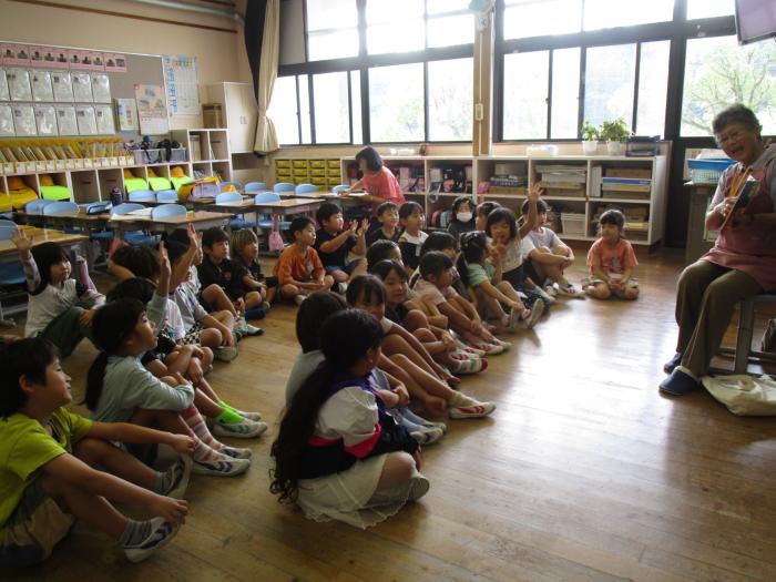 |  | 1年生 読み語りの時間です 今日は朝から図書ボランティア「ゆめのか」の皆様による読み語りで1日がスタートしました。1年生がとても楽しそうに本の世界に入っていました。「読…