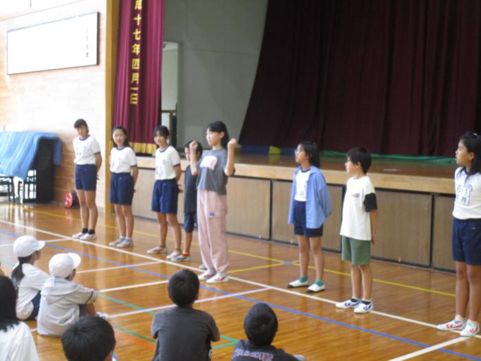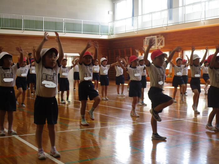 |  | 運動会練習です 体育館では1年生・2年生が運動会の踊りの練習をしていました。まだ練習を始めたばかりですが、ひとつひとつのポーズを先生の動きに真似ながら、一生…