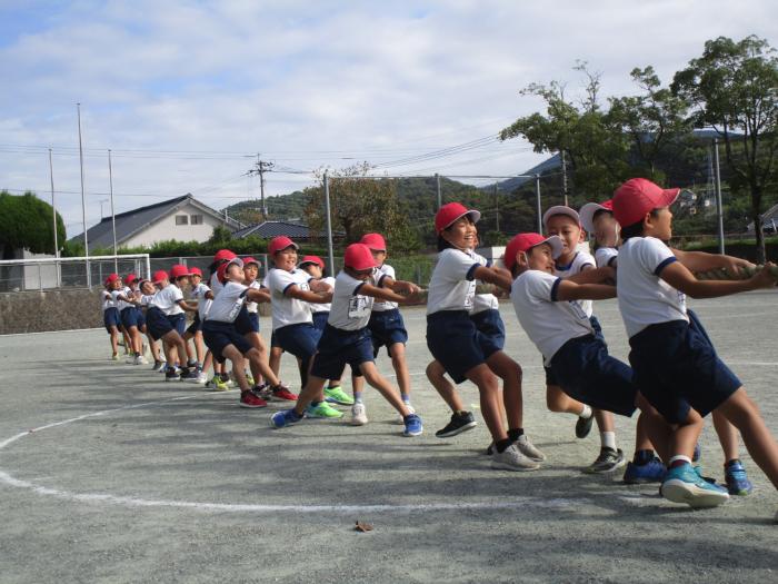 |  | 3・4年生 つなひきの練習です 運動場から大きなかけ声が聞こえてきました。3・4年生が運動会のつなひきの練習をしていました。本番さながら、力と声と心を合わせてつなを引く子ど…
