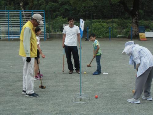 放課後子ども教室 グランドゴルフ交流会 6月8日(土)の午前中、南小運動場にて、グランドゴルフ交流会を開催しました。簡単そうで意外に難しいところや、世代を超えて一緒に楽しめるところ…