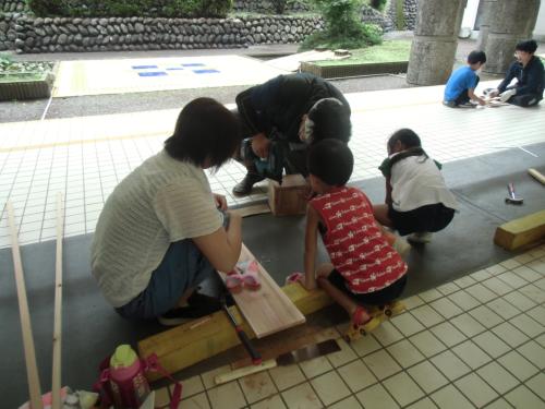 木工教室を開催! PTA美化活動の後、本校ピロティにて、放課後子ども教室「木工教室」を開催しました。本日の講師は大瀬 秀信さん(保護者)で、子どもたちは木工作…