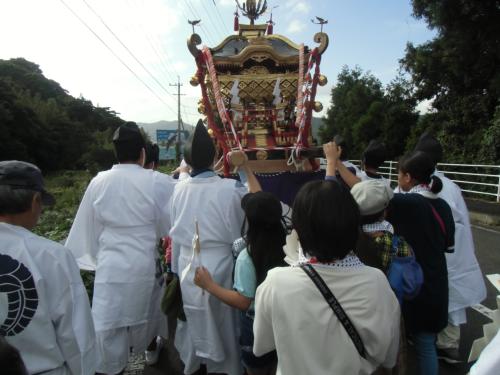 春日神社と御旅所である大渡鎮守神社の間を、神輿を引きながら行進する「お下り」に参加しました…