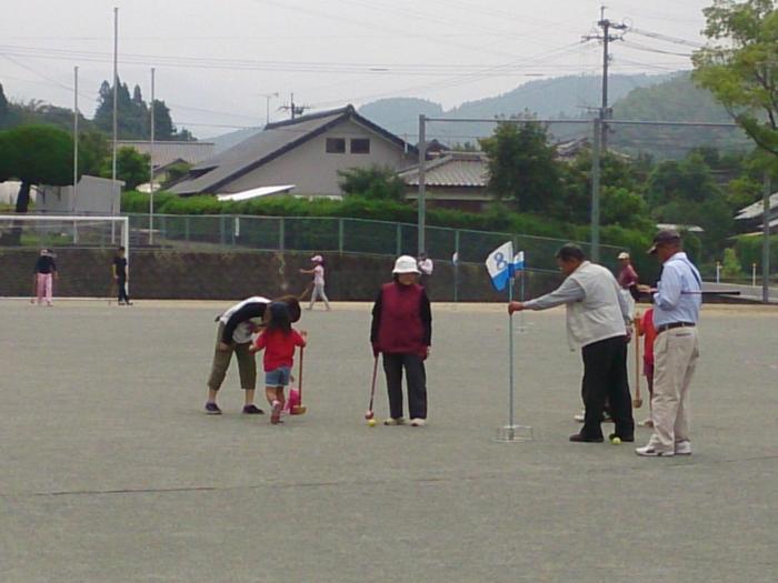 グランドゴルフ交流会 吉井町グランドゴルフ愛好会の皆さんのお世話で、グランドゴルフ交流会がありました。3世代が笑顔でグランドゴルフを楽しみました。