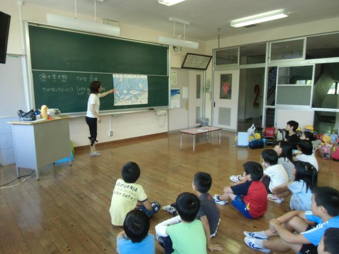 ことばの扉を開こうA 今日は、海の生き物についてお勉強しました。まずは、魚つりゲームからはじめました。