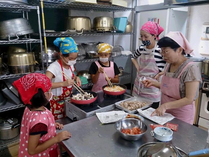 料理教室 7月17日(金)食生活改善推進委員の皆さんにご協力いただき、料理教室を行いました。バランスのとれた食事を楽しく作って、おいしくいただきました…