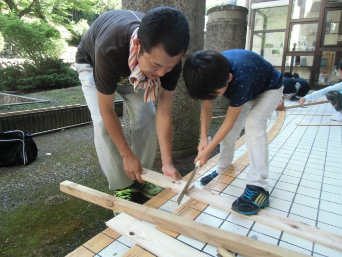 木工教室 夏休みの作品作りに親子で取り組みました。たくさんの材料を準備したり、作業を効率よく進めたりしてくださった講師の先生に感謝しています。