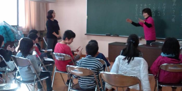 手話教室 12月12日(木)15時30分から手話教室を行いました。佐々の手話教室を主催されている先生に講師をしていただきました。子どもたちは、静まりか…