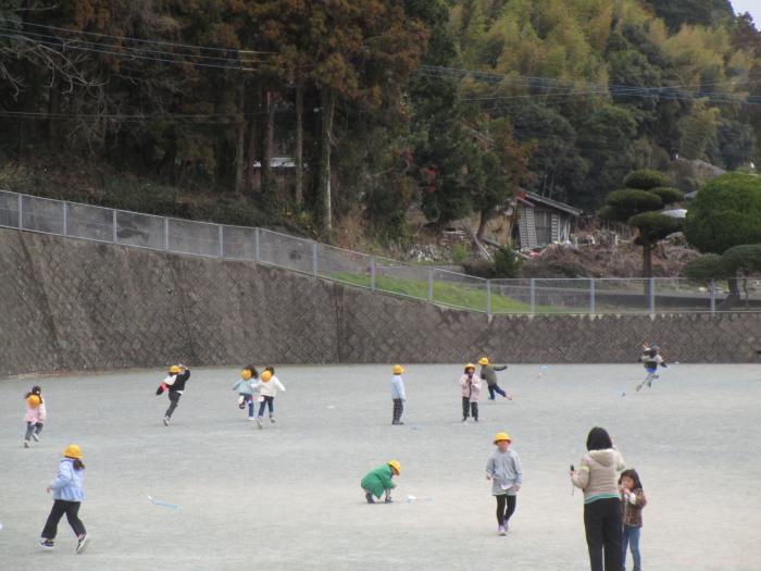 運動場では1年生が生活科の時間に作った「たこ」を揚げていました。寒さに負けず元気いっぱいです。
