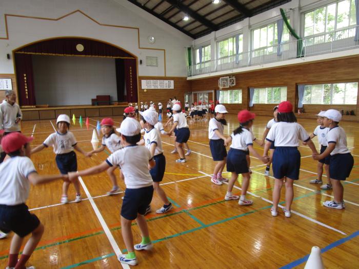 体育館で3年生が元気に体を動かしていました。