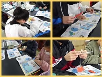 6年生 理科 「てこのはたらき」の学習のまとめとして、つり合いを利用したおもちゃ「モビール」作りを行いました。つり合いがとれるように一つずつていねいに作…