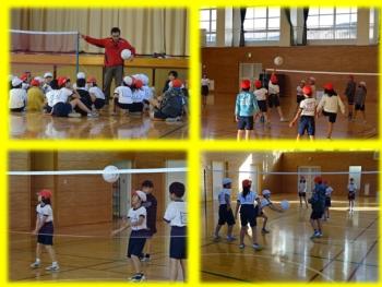 3年生 体育 ネット型ゲームのバレーボールを行っています。本格的なルールで行うと難しいので、ルールを工夫しながら学習を進めています。また、ボールの種類や…