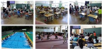 「準備運動⇒校長先生の話⇒諸注意⇒水慣れ⇒泳力調べ」という順…