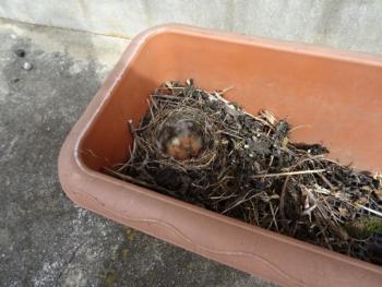 植える直前、プランターに鳥が巣を作っているのを発見。なんと卵とひながいました。みんなで…