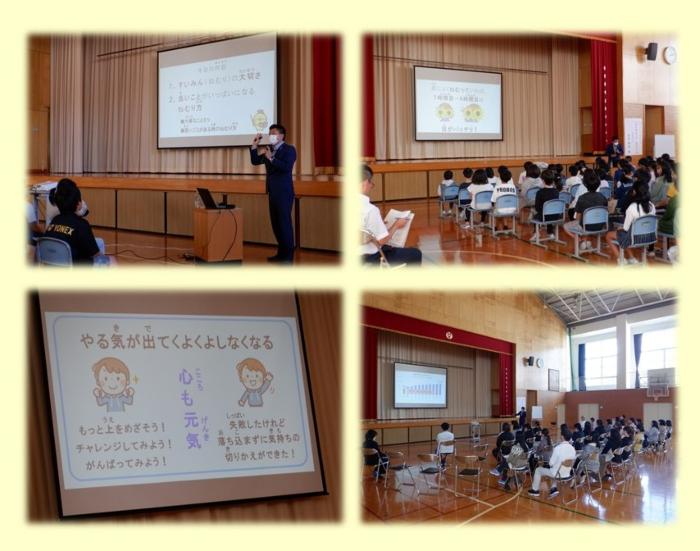 「親子健康学習会」を開催しました。   10月27日(金)、高学年の授業参観及び第2回学校保健委員会を兼ねて、「親子健康学習会」を開催しました。親子で、すいみんの大切さについて学ぶ…