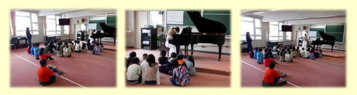 4年生がすばらしいピアノ演奏を体験しました。   13日(月)、4年生が本校音楽室で、佐世保市出身のピアニスト、迎 ゆかり先生のクラシックピアノを聴く機会に恵まれました。これは、アルカスSA…
