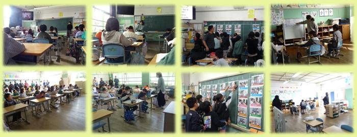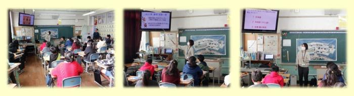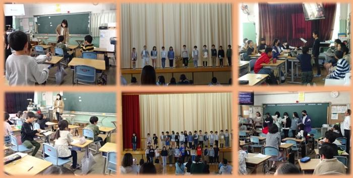 2年生は算数の学習、4年生は創立149周年集会で演じた劇、