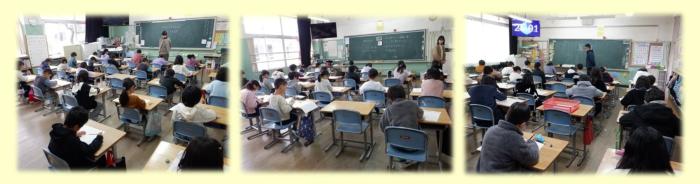 2・3校時、全学年で国語、算数について校内学力調査を実施しました。各学年、ここまでに学習している内容が出題範囲となっています。どの学年も、集中して問題に取り組むことができました。結果をしっかりと考察し、今後の指導に生かしていく予定です。