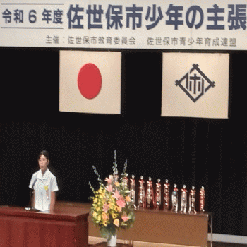 6日 令和6年度佐世保市少年の主張大会 令和6年度佐世保市少年の主張大会が体育文化館コミュニティセンターで行われました。相浦中からは3年生の森美月さんが演題を「結ぶ縁〜31センチに…