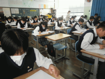 5日 3年生定期テスト 2年生が修学旅行、1年生が野外宿泊活動という行事の中、3年生は定期テストが行われました。今年から、高校の受験日が早くなってきたこともあり、も…