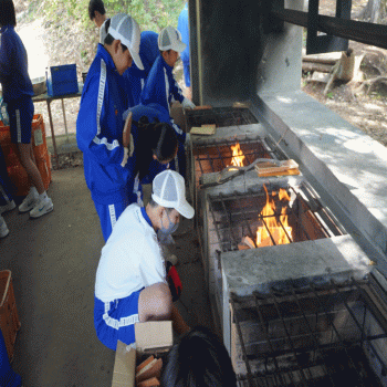 7日・8日 1年生野外宿泊活動 2日間の日程で、青少年の天地に行ってきました。初日の入所式では、あいさつや聞く姿勢を所長さんから褒められました。そして、飯盒炊爨。失敗が多い…