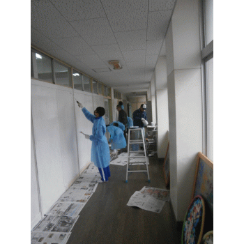 25日 特別支援学級廊下壁ペンキ塗り 特別支援学級の廊下の壁をペンキ塗りを行いました。