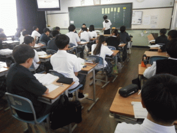 9日 黒島小中学校と交流道徳授業 2年2組の道徳の授業は、黒島小中学校の皆さんとオンラインで繋がり、学びを深めました。