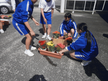 佐世保市緑化推進協議会の取組で、生徒会を中心に卒業式用の花をプランターに植え替えました。これは、入学式やそのあとの学校生活にも役に立てていきたいと思います。まずは、卒業式を彩ってくれるでしょう。