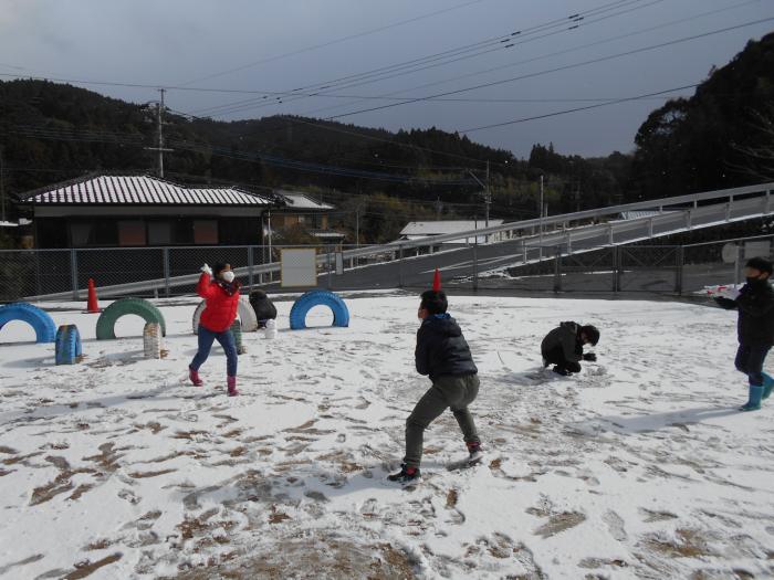 薄く積もった雪で、どの学年も遊んでいましたよ。