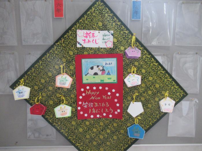 新春運試し 新年のための飾り付けが校内のあちこちにあります。