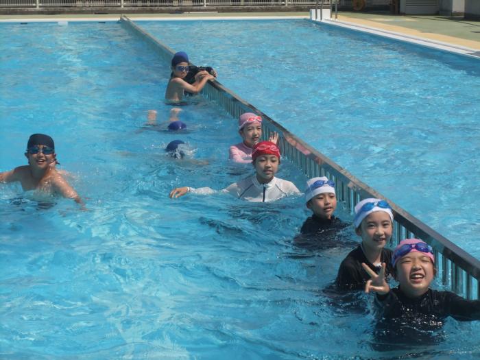 プールサイドに上がった6年生が口々に「わあ、きれい!」。