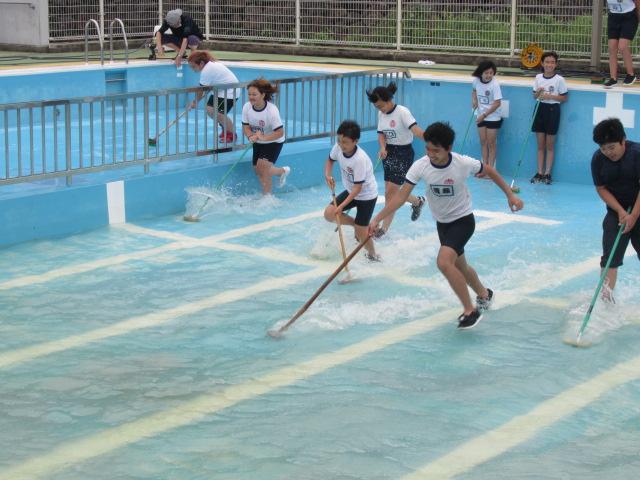 プール掃除で準備万端! 4〜6年生でプール掃除を行いました。