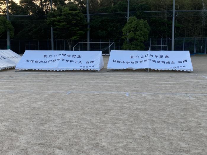 体育大会の準備にて 本日の午後、5月23日(日)開催の令和3年度第21回体育大会の会場設営を全校で行いました。1年生は主に校舎内外の掃除、2年生は入退場門の設…