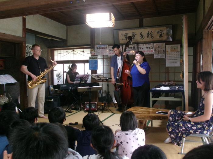 音楽鑑賞・体験教室 地域にある体験施設「とらいかん」において、5・6年生がジャズ音楽の鑑賞会と尺八の演奏体験を行いました。