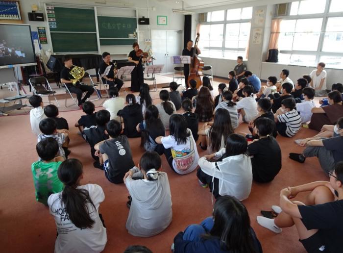 美しい音色に浸るひと時 広島交響楽団楽団員5名が来校され、6年生に向けて音楽ワークショップを行ってくださいました。これは、10月9日(木)に予定している芸術鑑賞会に…