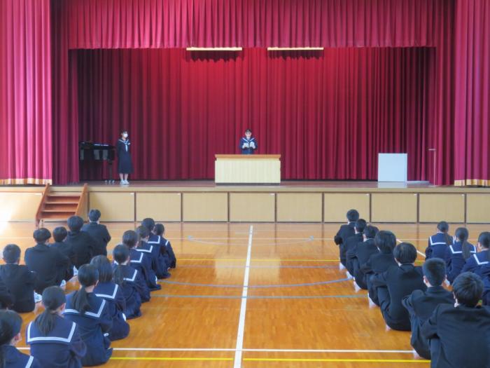 令和7年度の生徒会スローガン「翼」の紹介や2年生、3年生による出し物、部活動紹介が行われ、…