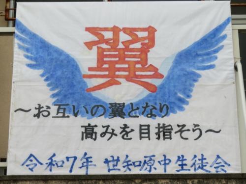 「生命」「健康」「夢」「一緒懸命」 令和7年度世知原中スタート! 「生命」「健康」「夢」「一緒懸命」をスローガンに令和7年度がスタートしました。