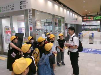 2年生まち探検 生活科の学習の一環として、2年生がまち探検第一段に出かけました。学校の近くにある施設(保育園・駐在所・郵便局)や史跡などの目印などを見て回り…