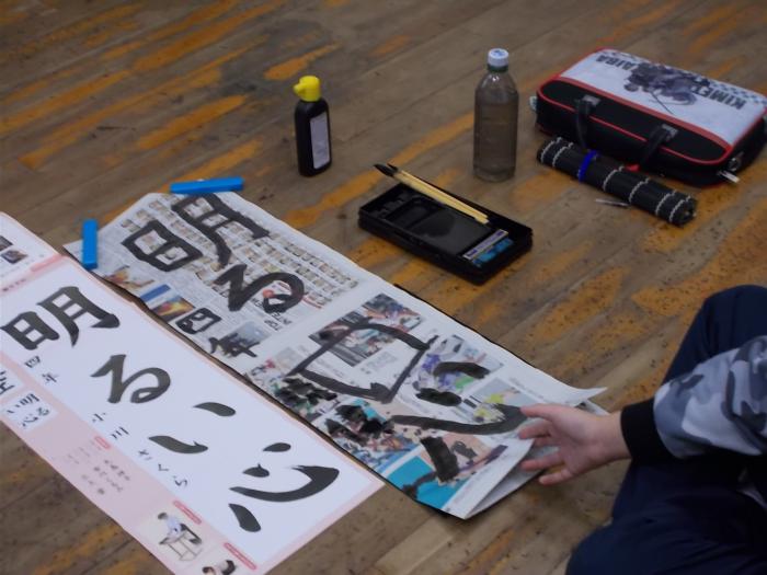 書き初め 大きい紙に書くことが経験少ない子供たちには、書き初めへの挑戦は緊張します。