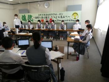 新型コロナウィルス感染予防のためリモートで集会を行いました。小学6年生から中学3年生まで、実行委員を中心に学習したことを発表しました。