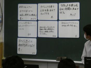 昨年度、不適切な使い方があったため、今、パソコンを昼休みに使ってはいけない状況にあるのですが、「昼休みに使うことができるようにするためには、どうすればいいのか」という議案について、各学級、熱心に話し合いをしていました。