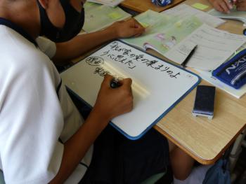 <ホワイトボードを使ったり、学級で多数決をとったりして意見を出し合いました!>