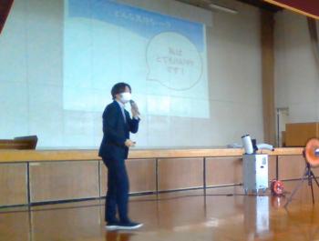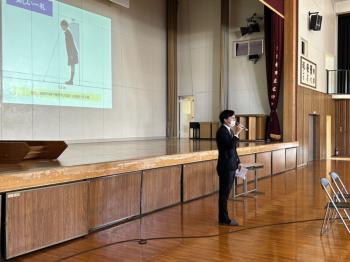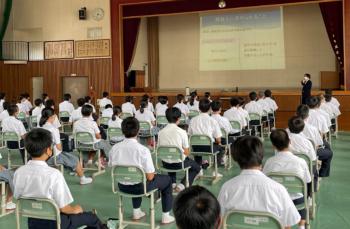 講師には、菅公学生服株式会社より来ていただきました。「よりよいコミュニケーション」のための、「話し方」や「立ち居振る舞い」についてお話をしていただきました。この学びを、10月の職場体験学習につなげましょう。