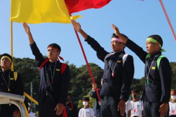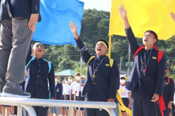 テーマは「輝け〜一人ひとりの個性を活かして〜」。本当に一人ひとりが競技だけでなく、係活動、準備から片付けまでを含め自分の役割をしっかり果たし、輝いた体育大会でした。体育大会での経験を、これからの学校生活へつなげてほしいと思います。